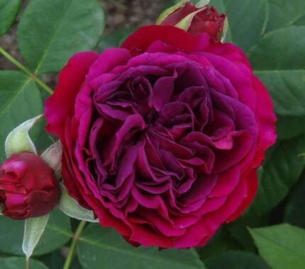 Krūmroze- franču, lieli kruzuļoti ziedi fuksiju krāsa ar gaišāku ārpusi. Spēcīga smarža, h-1.2m, izturīga, neslimo.