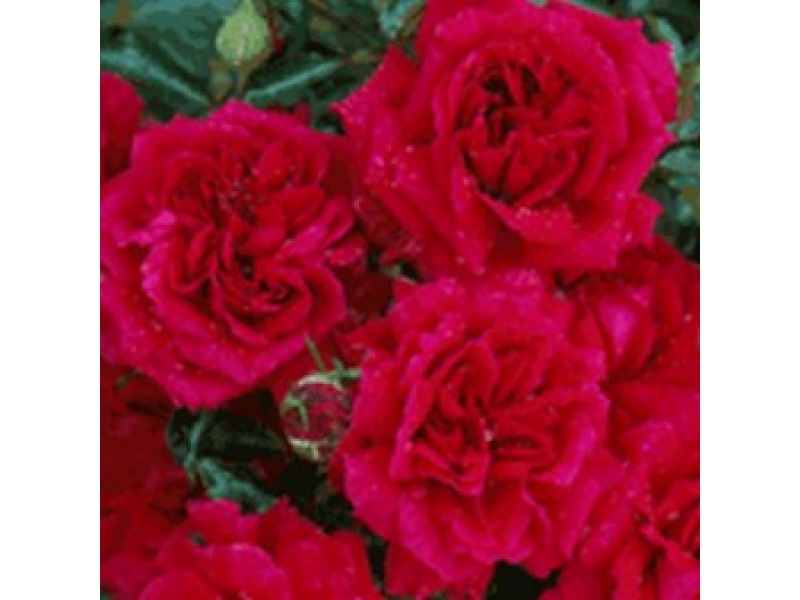 Krūmroze. Tumši sarkana, lieliem, pildītiem ziediem, spēcīgs augļu aromāts, h-1.3m.