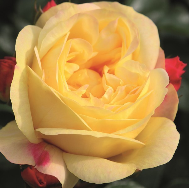 Floribundroze. Dzeltena, zieda forma apaļa, delikāta smarža, zied bagātīgi, izturīga, h-0.7m.