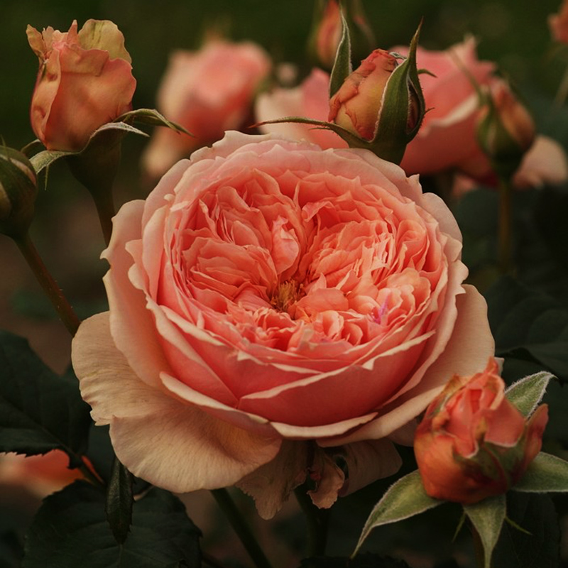 Krūmroze- lieli persiku krāsas ziedi, izcila smarža, spīdīgas lapas, H-1,2m