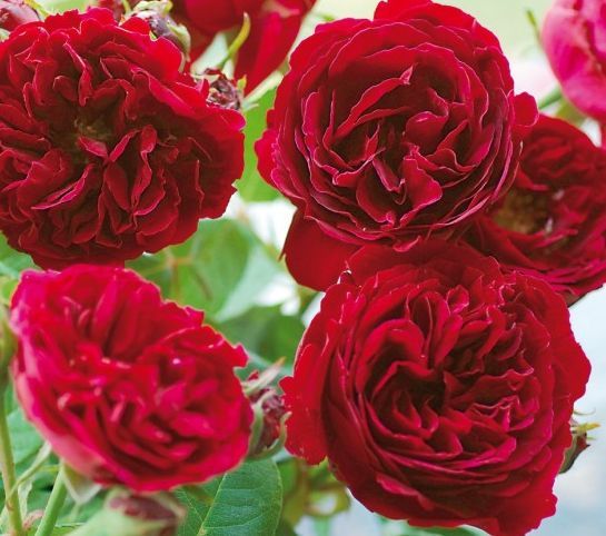 Krūmroze-remontatroze. Tumši sarkani ziedi ar bordo nokrāsu, izteikti smaržīgi, pusspīdīgas lapas, zied atkārtoti. Krūms bez ērkšķiem, h-1.8m. Izturīga.